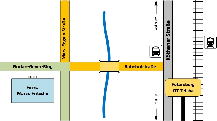 Bahnhofstraße abbiegen. So ist das Betriebsgelände schon nach etwa 300m zu erreichen.