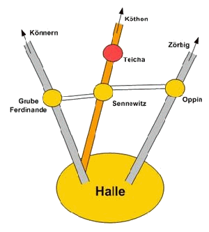 von Halle-Trotha aus auf der Köthener Straße - in Richtung Petersberg (Köthen)